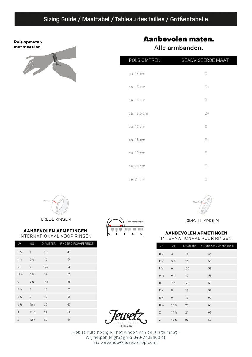 At Jewelz you'll find, both in our shops and online, one of the largest Buddha to Buddha collections of the Benelux! Get inspired online or get advice in our shops. Not sure what size you need of an item? You can find our size guide at every Buddha to Buddha item. Need some extra help? Then you can always call us at +31(0)40-2438800 or mail us at [email protected].