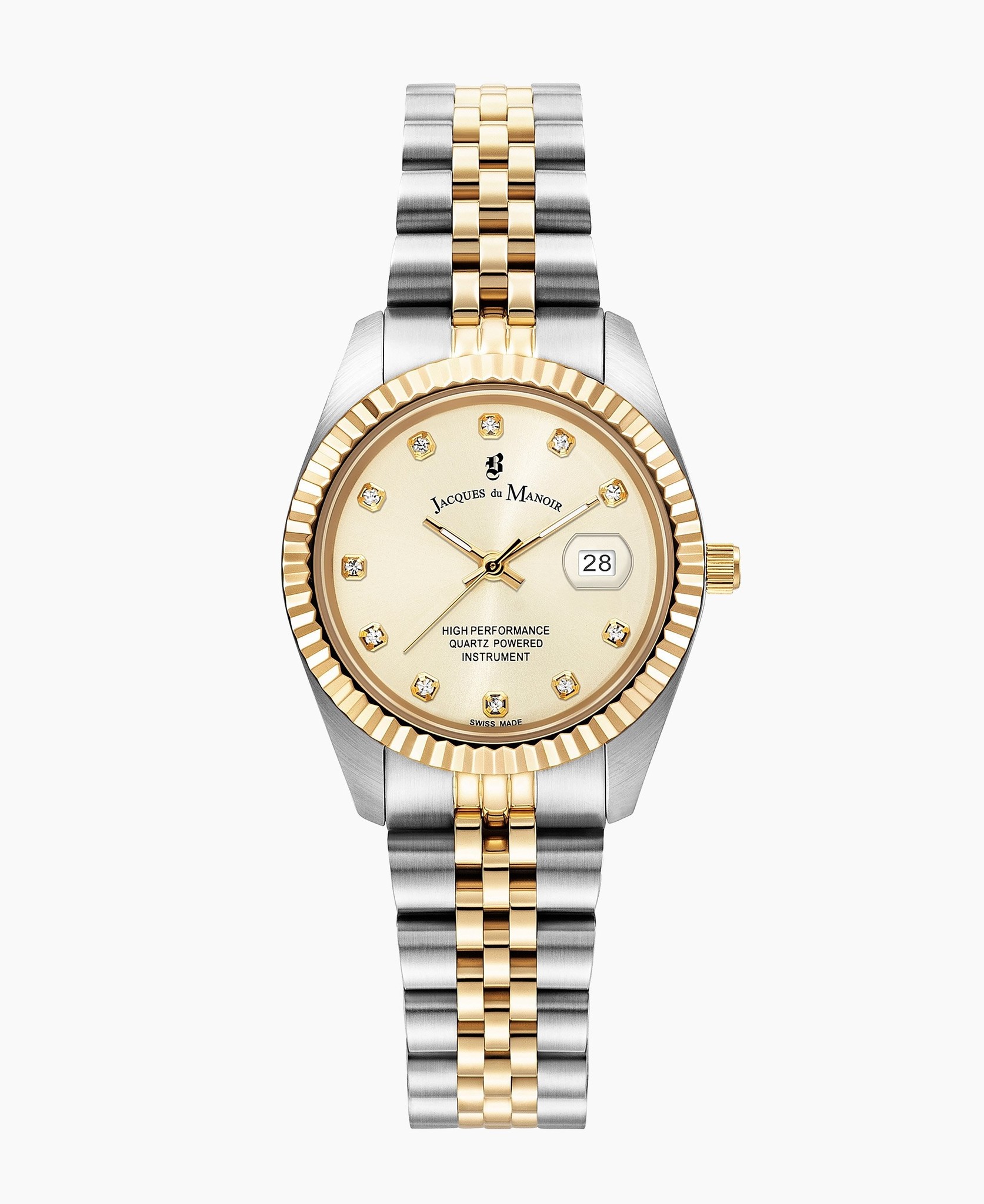 Shop the beautiful watches from Jacques du Manoir. All timepieces are fully Swiss Made and 5 ATM water resistant. The brand offers models of 26mm, 36mm and 40mm in yellow, steel, rosé or bicolor. Jacques du Manoir ensures that all customers find a watch that appeals to them. Whether trendy, traditional or elegant. Create a unique fashion statement with your favorite watch!