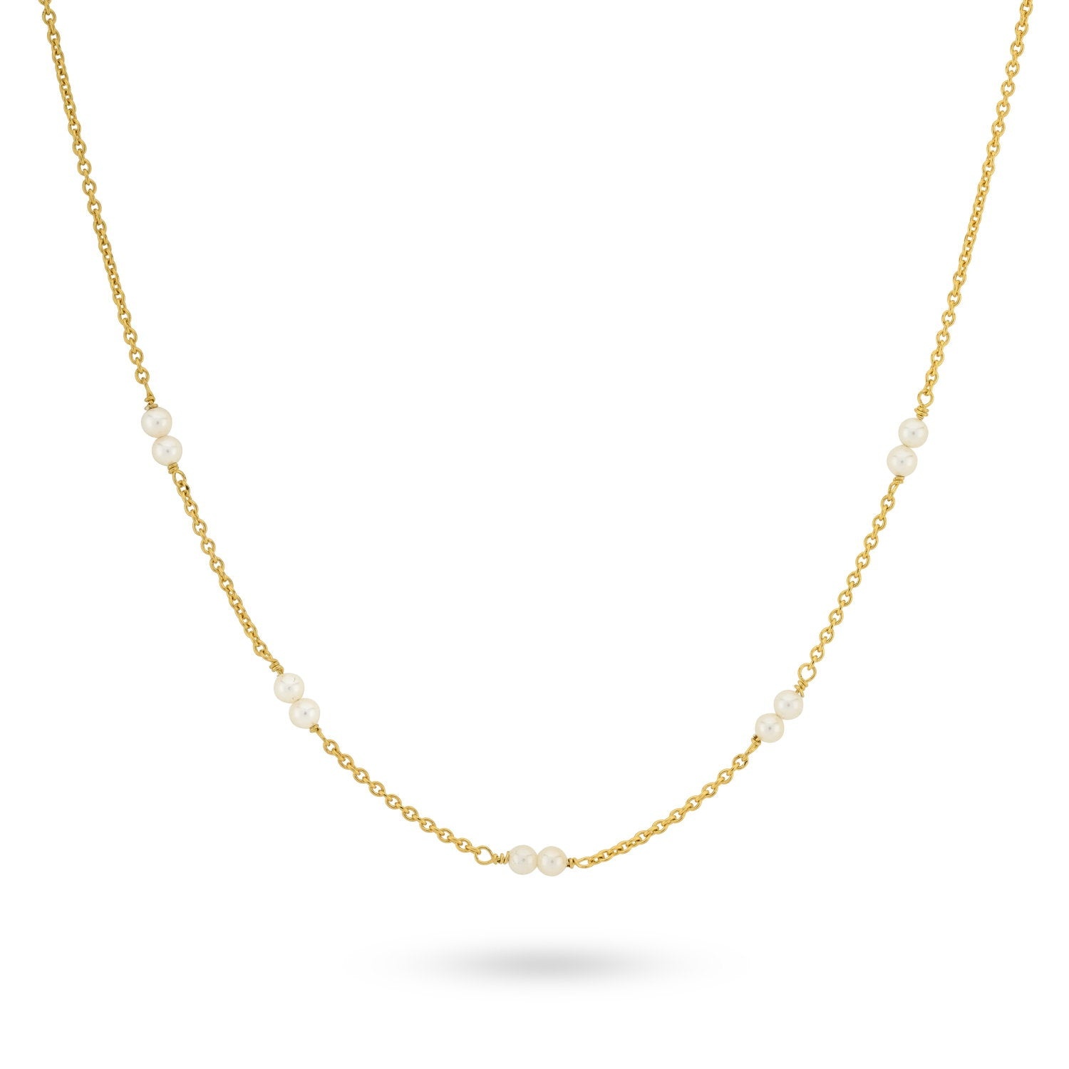 Op zoek naar een subtiele, maar elegante ketting? Dan is deze parelketting de perfecte keuze. De kleine parels zijn met zorg aan een dunne ketting geregen, waardoor een tijdloos en verfijnd sieraad ontstaat. Draag hem alleen voor een klassieke look, of combineer hem met andere kettingen voor een meer gelaagde stijl.