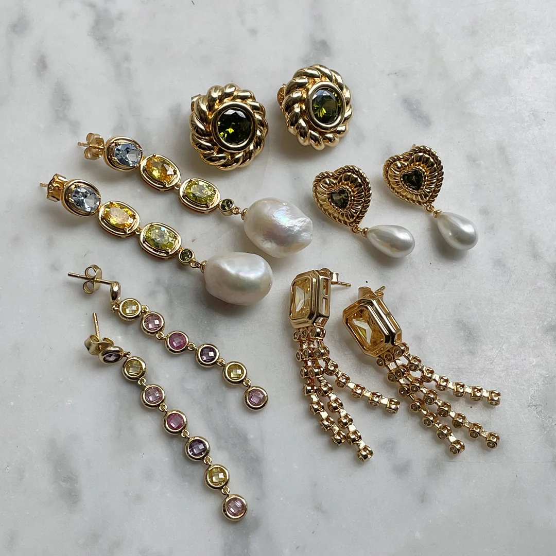 Met een lengte van 27 mm en een totaalgewicht van 4,5 gram per paar zijn de Amour oorbellen opvallend maar licht genoeg om langdurig te dragen. De combinatie van de groene steen, de parel en het goudkleurige zilver zorgt voor een tijdloze en elegante uitstraling, die elke look subtiel completeert.