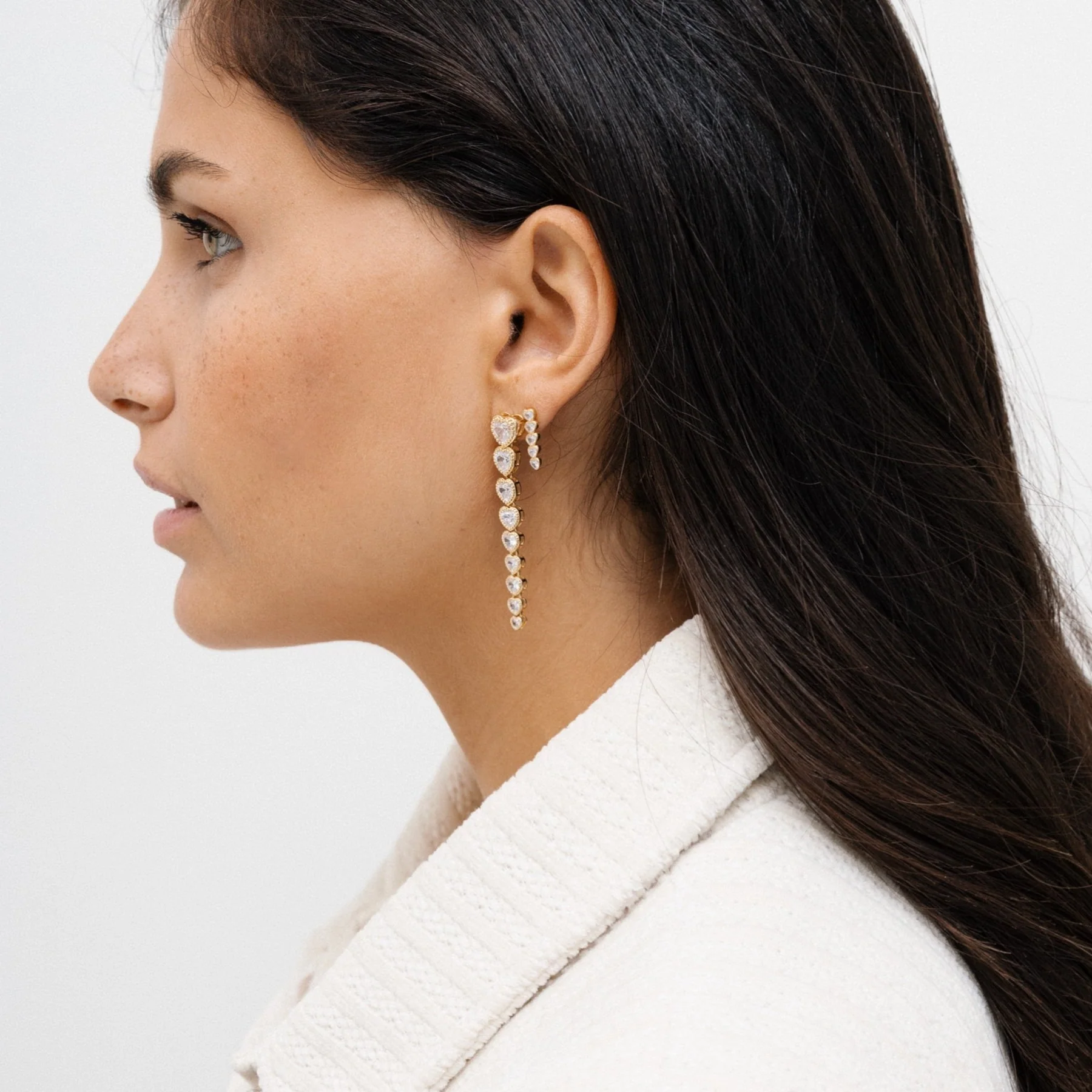 De oorbel is voorzien van een schattige rij van 5 kleine hartjes, elk subtiel geaccentueerd met een sprankelende zirkonia steen van 3 mm. De glinstering van de zirkonia's geeft een luxueuze uitstraling zonder te overdrijven, waardoor deze oorbel zowel elegant als speels is. Met een lengte van 16,7 mm is deze oorbel perfect om te dragen als een enkel statement of om te combineren met andere kleine oorbellen voor een trendy, gelaagde look. Creëer je eigen unieke oorparty door deze hartjesoorbel te mixen en matchen met andere minimalistische of opvallende ontwerpen uit onze collectie.