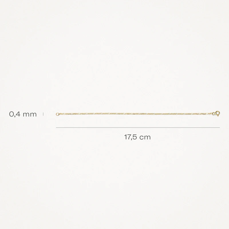Ontdek de verfijning van deze tijdloze Figaro armband van Blush, vervaardigd uit 14k geel goud. Met een lengte van 17,5 cm en een subtiele breedte van 1,6 mm vormt deze armband een elegante aanvulling op iedere sieradencollectie. Het klassieke Figaro-schakelontwerp geeft een verfijnde uitstraling, terwijl de veerringsluiting zorgt voor een veilige en comfortabele pasvorm. De armband is licht van gewicht en kan zowel solo als in combinatie met andere armbanden of horloges gedragen worden, waardoor hij perfect is voor dagelijks gebruik, werk of een elegante avondlook.