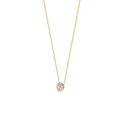 De combinatie van witgoud en zirkonia maakt dit collier tot een zeer elegant geheel. De ketting is 42 cm lang. De hanger met 7 diamantgeslepen zirkonia’s heeft een doorsnede van 5,2 mm.