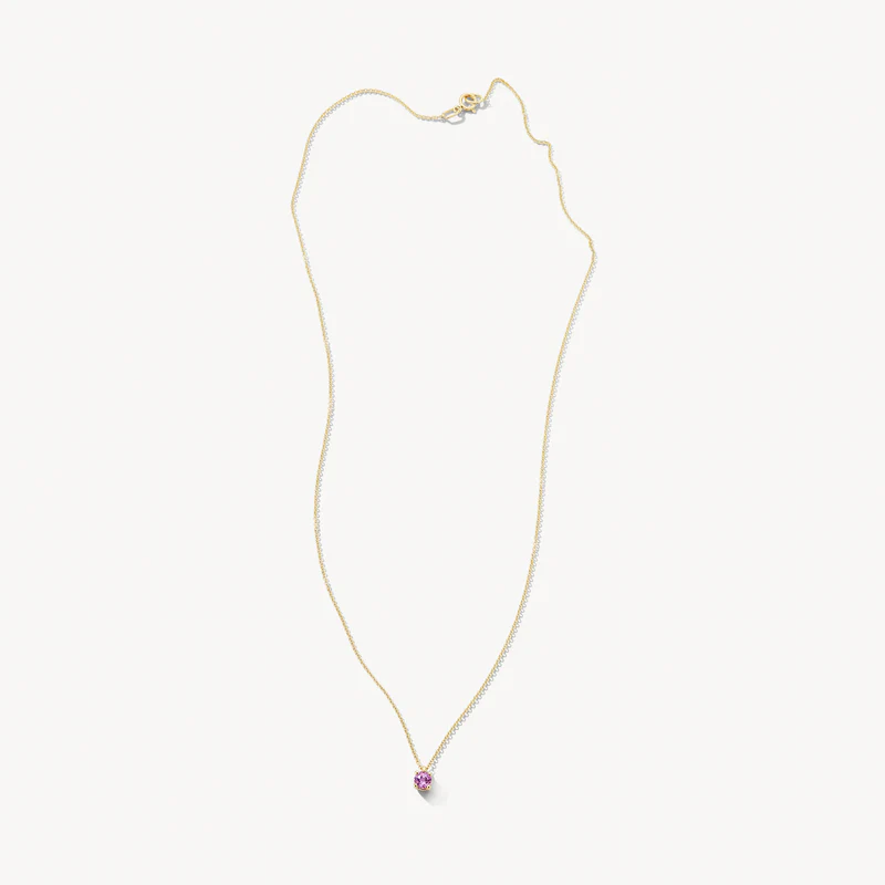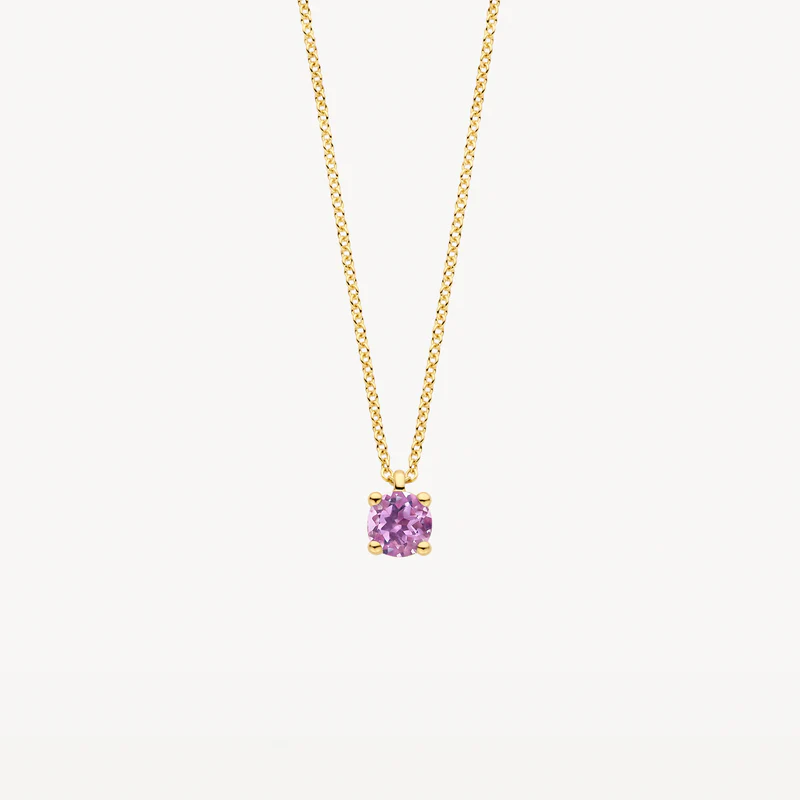 Meta description: Dit tijdloze 14k geelgouden collier met een roze amethyst is meer dan alleen een sieraad. De roze amethyst, de geboortesteen van juni, staat symbool voor zuiverheid en innerlijke rust. Een persoonlijk cadeau voor jezelf of een geliefde. Ontdek de collectie van Blush Jewels bij Jewelz.
