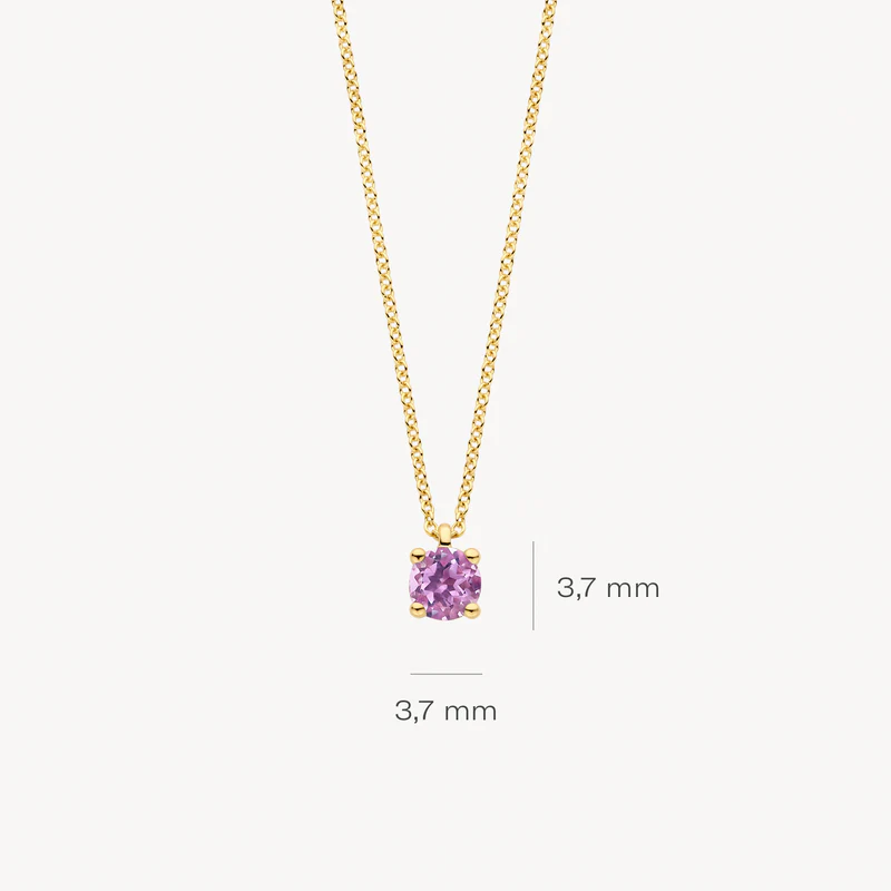 4k geelgouden collier met roze amethyst - de geboortesteen van juni