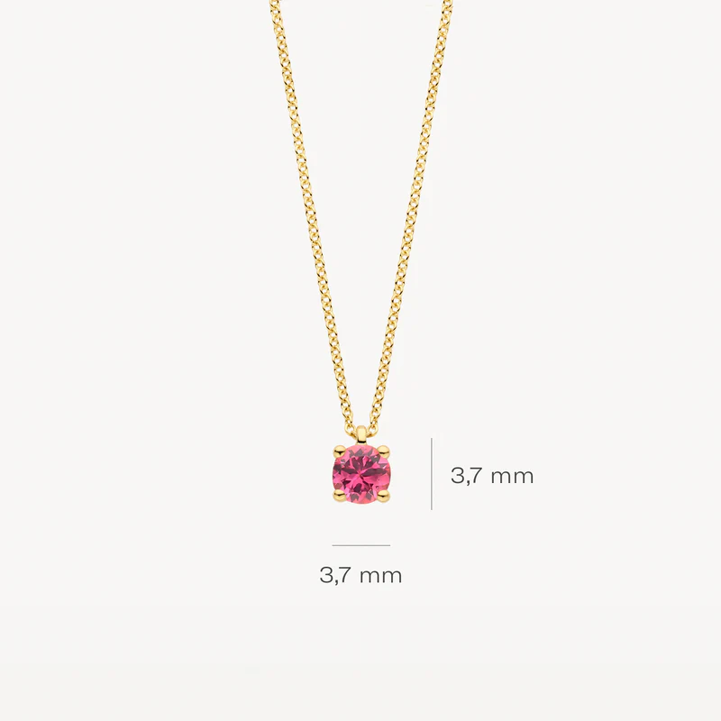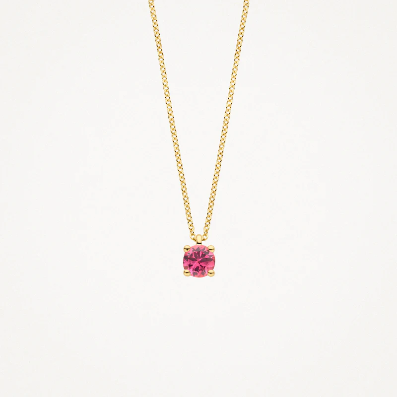 Meta description: Dit tijdloze 14k geelgouden collier met een roze toermalijn is meer dan alleen een sieraad. De toermalijn, geboortesteen van oktober, staat symbool voor balans en positieve energie. Een persoonlijk cadeau voor jezelf of een geliefde. Ontdek de collectie van Blush Jewels bij Jewelz.