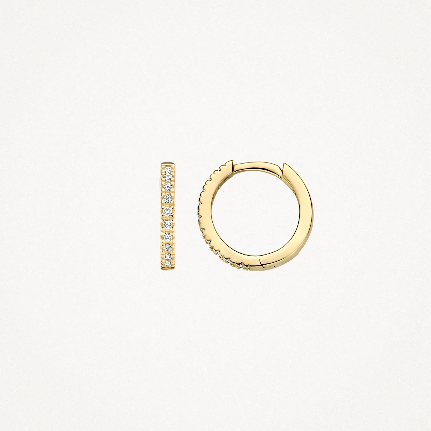 Deze oorringen zijn vervaardigd uit hoogwaardig 14k geelgoud en zijn voorzien van een kliksluiting voor extra gemak. De schitterende zirkonia steen is met uiterste precisie in pave zetting geplaatst, waardoor deze oorringen een vleugje glamour aan je look toevoegen.