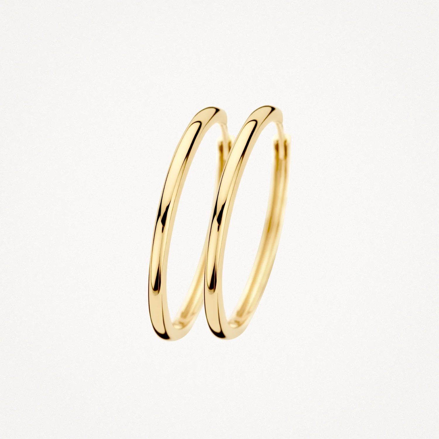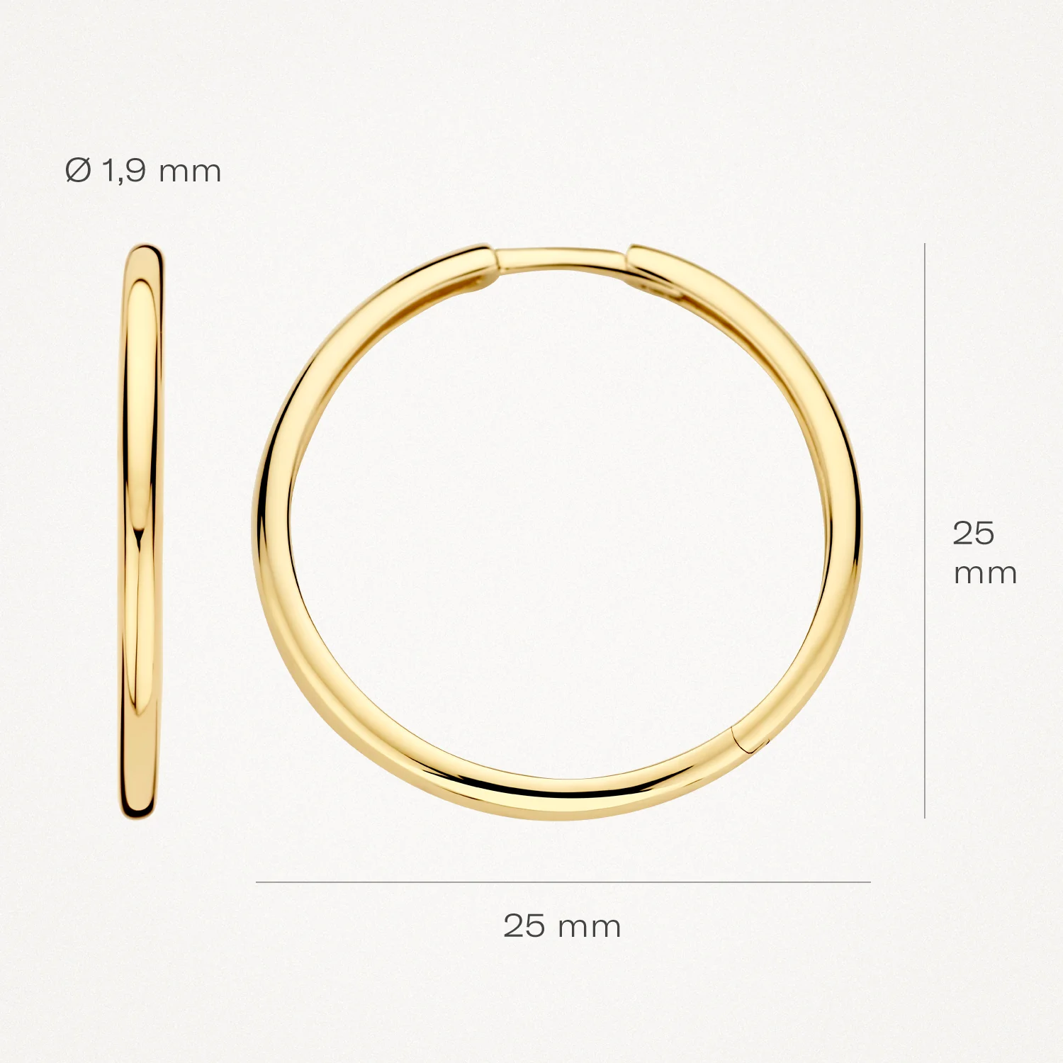 Deze klassieke, ronde, gladde oorringen van 14k geelgoud zijn een echte must-have voor elke sieradencollectie. De oorringen hebben een totale doorsnede van 25 mm en zijn voorzien van een kliksluiting.