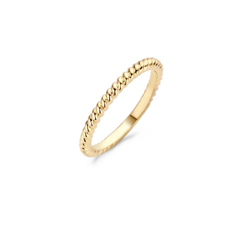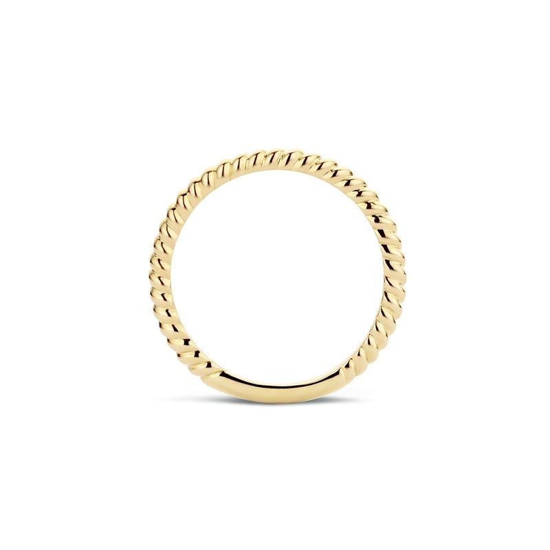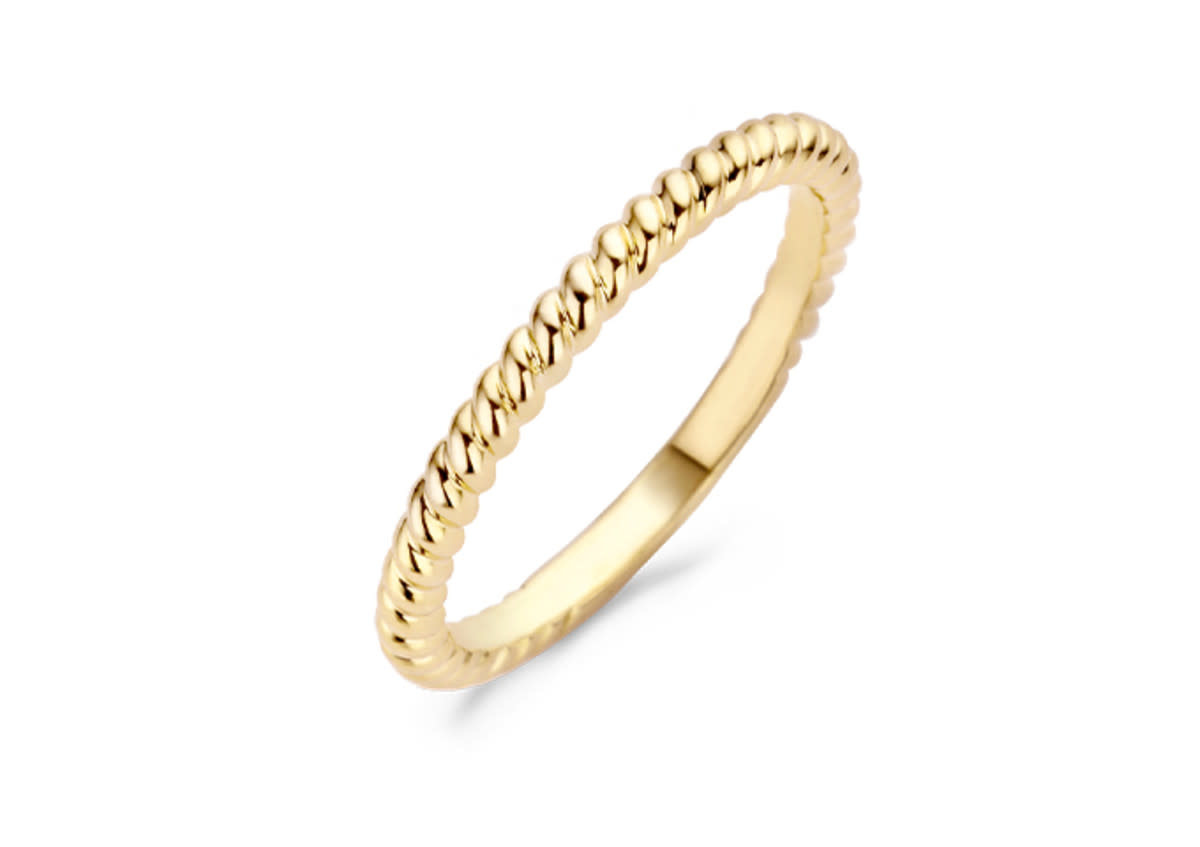 Deze simpele, stijlvolle ring van 14k geelgoud heeft een gedraaid motief. De band is 2 mm breed. Leuk te mixen en matchen met andere ringen uit de Blush collectie.