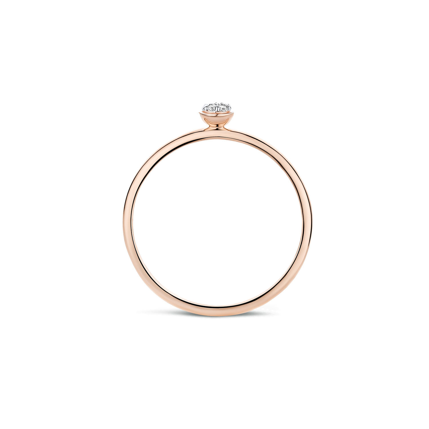Deze 14 karaat gouden ring is uitgevoerd in glanzend gepolijst rosegoud en voorzien van een 7 briljant geslepen witte zirkonia. Draag deze 1,3 milimeter brede ring gecombineerd met meerdere Blush ringen voor een vrouwelijk-geraffineerd effect.