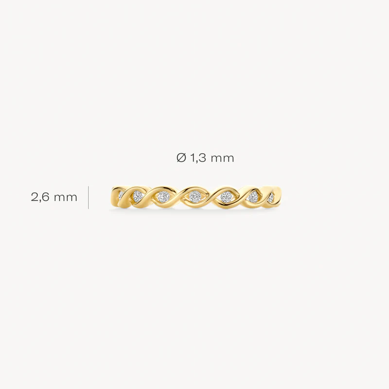 Ontdek de elegante eenvoud van onze 14k geelgouden ring, bezet met schitterende zirkonia's. De zirkonia's zijn vakkundig geplaatst in een railzetting, waardoor een strakke en moderne uitstraling ontstaat. De subtiele band en de tijdloze kleur van het geelgoud maken deze ring tot een veelzijdig sieraad dat perfect past bij elke gelegenheid.