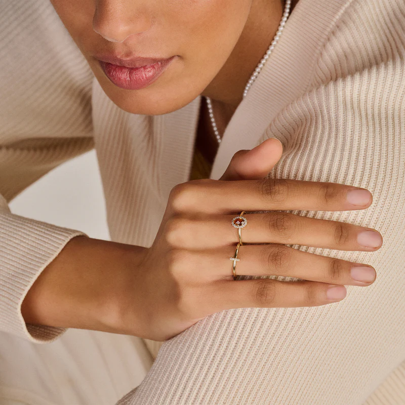Deze ring maakt deel uit van de Blush-collectie: sieraden die bekendstaan om hun fijne details en hoogwaardige afwerking. Elk ontwerp wordt met zorg gemaakt, zodat jij een sieraad kiest dat lang meegaat en met je meegroeit. De warme glans van het goud, de helderheid van de zirkonia’s en de subtiele vormgeving maken dit een ring die je elke dag weer een klein moment van schoonheid geeft.