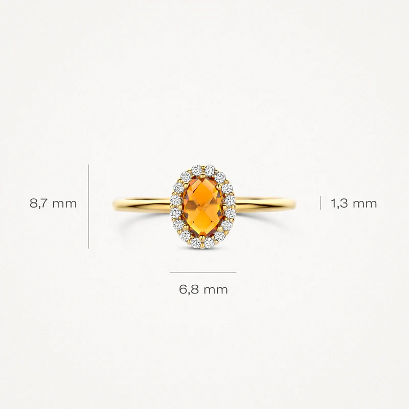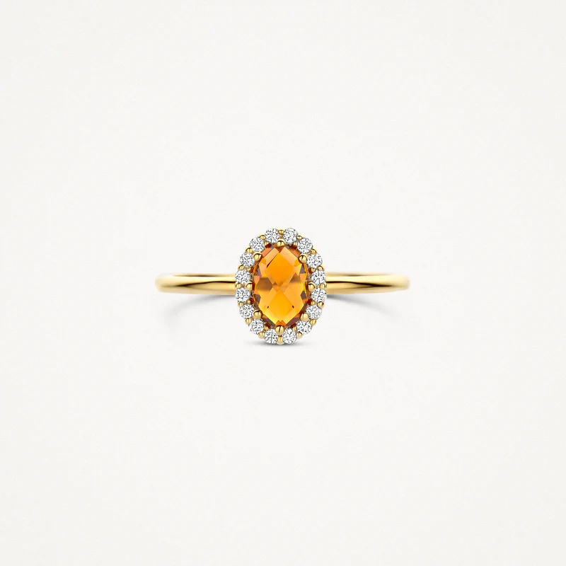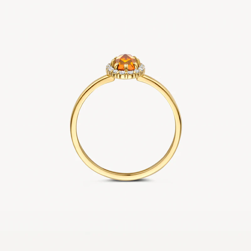 Een klassieke schoonheid met een moderne twist – dat is de Blush ring Madera Citrien en Zirkonia. Deze 14k geelgouden ring straalt warmte en elegantie uit dankzij de prachtige oranje madeira citrien, omringd door fonkelende zirkonia’s in pavé-zetting. De combinatie van het rijke goud met de levendige stenen zorgt voor een luxueuze, maar subtiele uitstraling die moeiteloos bij elke stijl past.