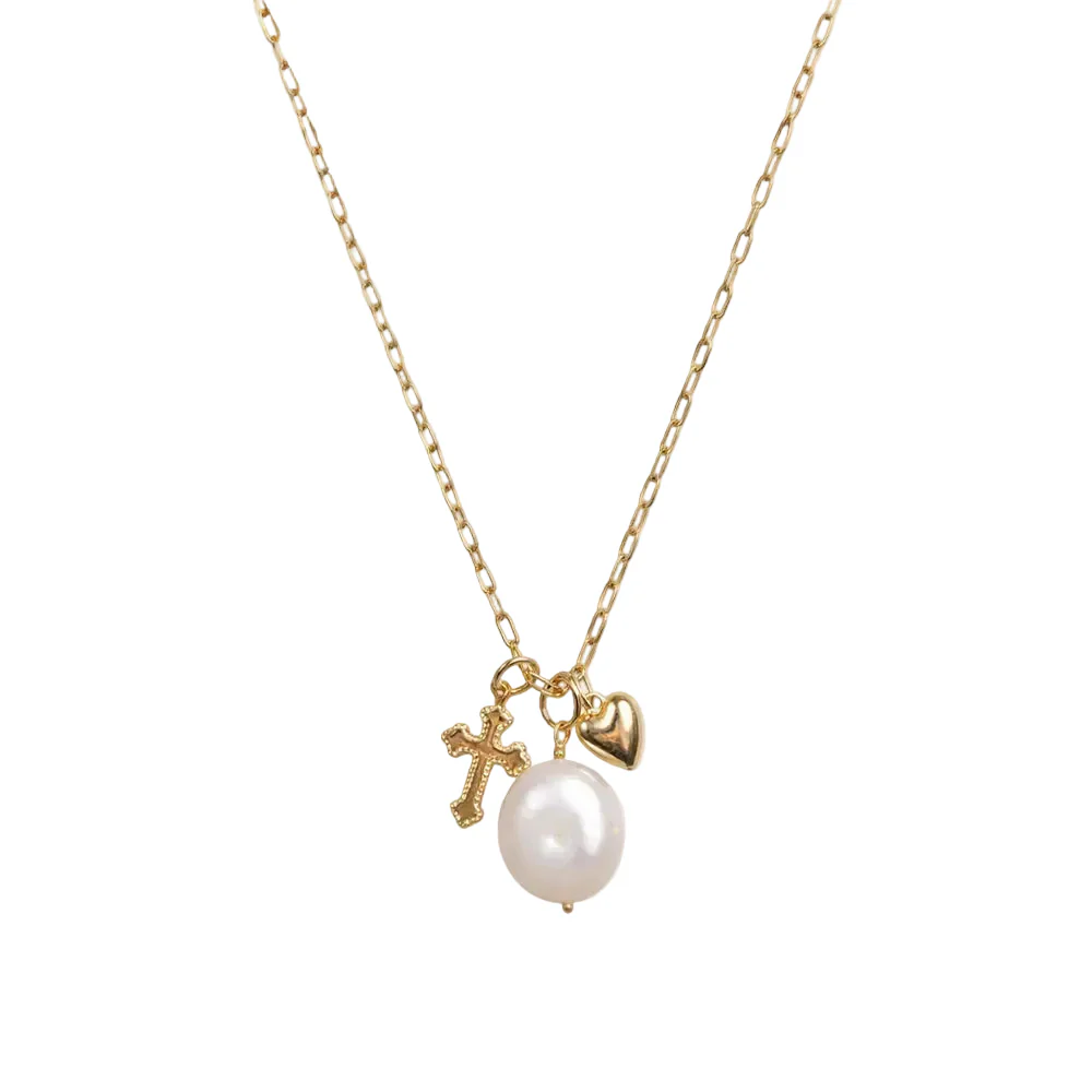 Bobby Rose Ketting Charms Cross Pearl