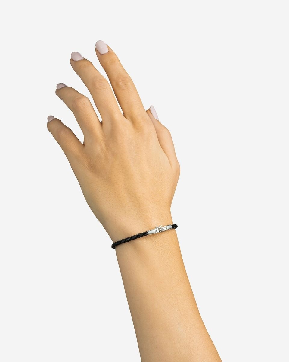 Het samenspel van het diepzwarte, kwalitatieve leer en het glanzende, gerecyclede zilver creëert een tijdloze en veelzijdige accessoire die moeiteloos aansluit bij diverse stijlen. De handgeweven details getuigen van het pure vakmanschap waarmee deze armband in Zuidoost-Azië is vervaardigd, waar traditie en moderne duurzaamheidsprincipes hand in hand gaan. Deze armband is een ideale keuze voor wie een accessoire zoekt dat niet alleen mooi is, maar ook een verhaal van bewuste keuzes vertelt.
