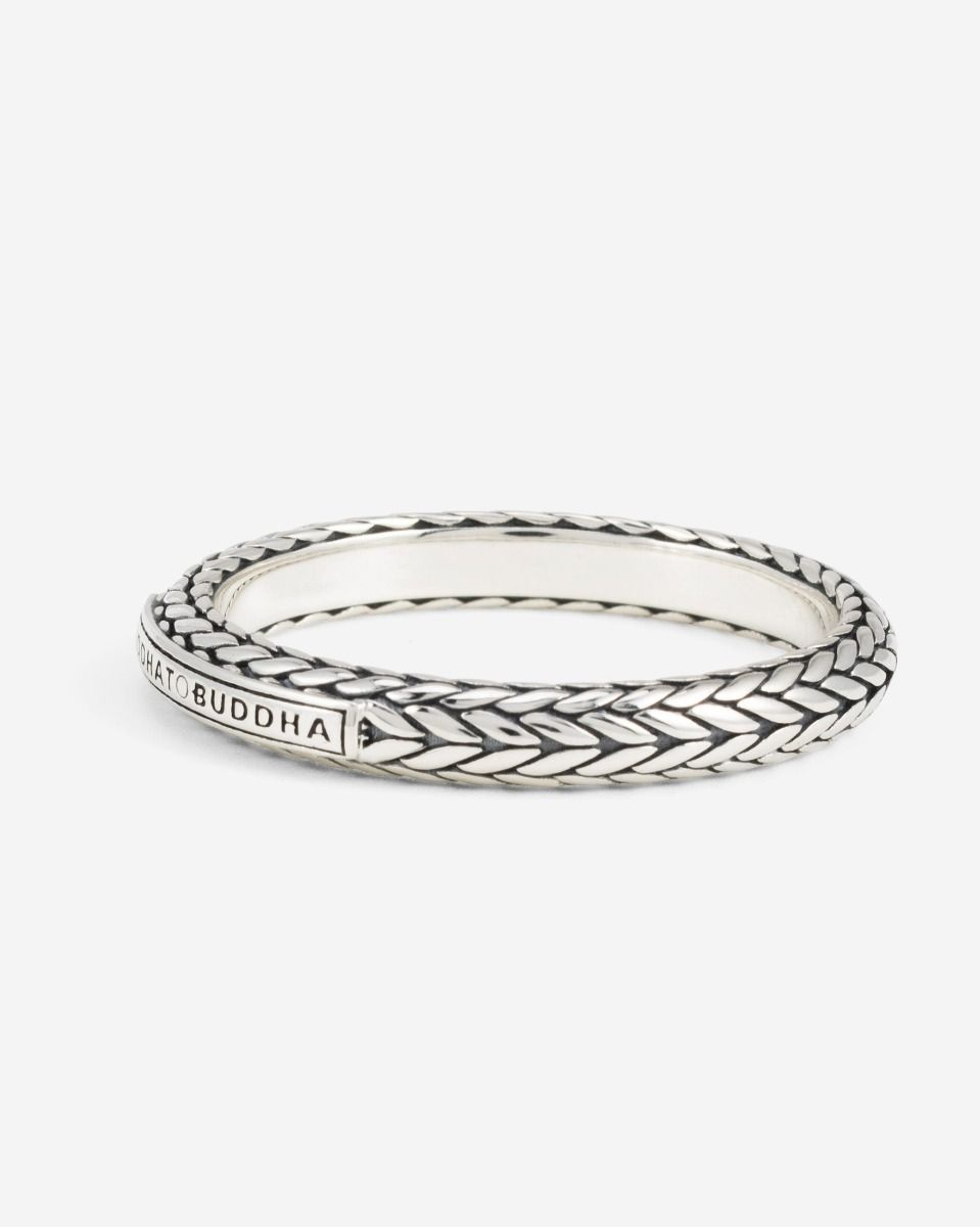 De Ring Ellen XS belichaamt de toewijding van Buddha to Buddha aan kwaliteit en duurzaamheid. Het gebruik van gerecycled zilver getuigt van een bewuste keuze voor het milieu, waardoor je niet alleen een prachtig sieraad draagt, maar ook bijdraagt aan een meer verantwoorde toekomst. Het verfijnde weefpatroon, met zijn subtiele textuur en vloeiende lijnen, is met de hand aangebracht door ervaren ambachtslieden in Zuidoost-Azië, waar traditionele technieken en moderne designfilosofieën samenkomen.