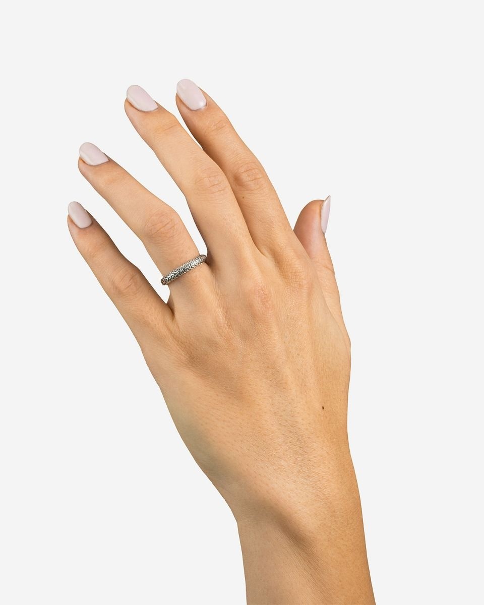Ontdek de subtiele elegantie en diepe betekenis van de Buddha to Buddha Ring Ellen XS, een verfijnd sieraad dat vakmanschap combineert met de kracht van persoonlijke expressie. Exclusief verkrijgbaar bij Jewelz, is deze unisex ring een prachtig voorbeeld van de iconische Ellen-weeftechniek, een signatuur van Buddha to Buddha die staat voor verbondenheid en tijdloze schoonheid. Handgemaakt van premium gerecycled 925 sterling zilver, straalt deze ring een ingetogen luxe uit die moeiteloos elke outfit complementeert.