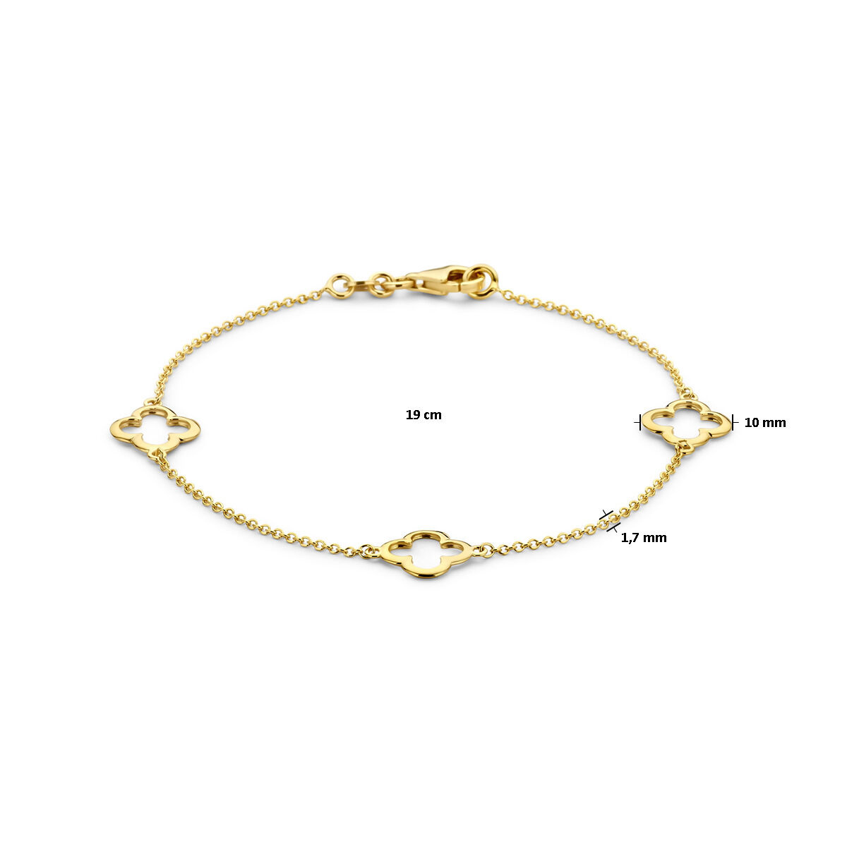 Breng een vleugje natuur en verfijning in je sieradencollectie met de Fleur de Kiki 14k geelgouden bloemen armband, een sieraad dat bloemrijke charme en vakmanschap uitstraalt. Deze armband is vervaardigd van 14 karaat geelgoud (58,5% zuiver goud) met een gepolijste afwerking, wat zorgt voor een warme, glanzende uitstraling die mooi contrasteert met de delicate bloemmotieven. De armband heeft een anker schakeltype voor een klassieke, duurzame structuur, met een breedte van 10 mm en een vaste lengte van 19 cm (zonder extensie), perfect voor een comfortabele pasvorm om de pols. Met een licht metaalgewicht van circa 1,93 gram, draagt deze armband moeiteloos de hele dag door, ideaal voor zowel casual outfits als elegante gelegenheden.