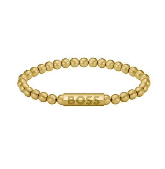 Deze goudkleurige Hugo Boss kralenarmband is ontworpen voor de man die een statement wil maken. Of het nu een casual of formele gelegenheid is, deze armband voegt een onmiskenbare dosis stijl en luxe toe. Het is een veelzijdig accessoire dat moeiteloos te combineren is met diverse outfits.