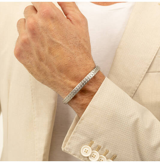 - One Size: Deze bangle is ontworpen om comfortabel om de meeste herenpolsen te passen.