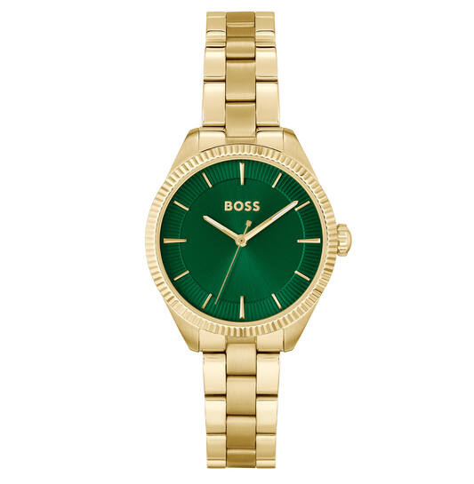 - Uniek design: Goudkleurig horloge met een opvallende groene wijzerplaat.