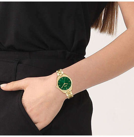 De horlogekast en band zijn vervaardigd uit hoogwaardig roestvrij staal, afgewerkt met een schitterende goudkleurige coating. De unieke groene wijzerplaat trekt direct de aandacht en geeft het horloge een bijzondere uitstraling. Het mineraalglas beschermt de wijzerplaat tegen krassen, terwijl de vlinder- of vouwsluiting zorgt voor een comfortabele en veilige pasvorm.