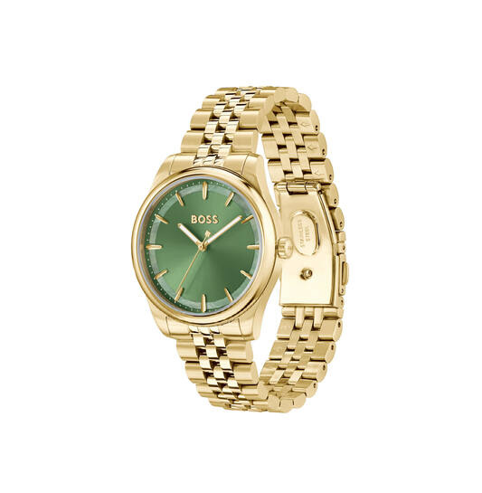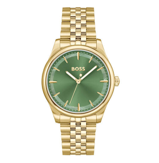 Het GRACEFUL horloge is een elegant dameshorloge dat tijdloze stijl en moderne verfijning perfect combineert. De goudkleurige kast en band van staal geven het horloge een luxe uitstraling, terwijl de groene wijzerplaat een verrassend kleuraccent toevoegt en het geheel uniek maakt. Met een diameter van 36 mm en een kasthoogte van 8,2 mm is dit horloge subtiel, vrouwelijk en comfortabel om te dragen.