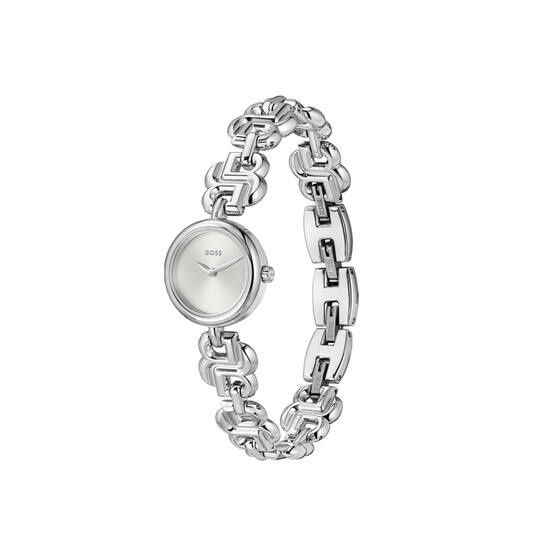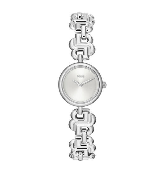 Ontdek de pure elegantie van de Hugo Boss Double B Dressy dameshorloge, nu exclusief verkrijgbaar bij Jewelz. Dit volledig zilverkleurige horloge is de perfecte keuze voor de vrouw die houdt van een subtiele, maar verfijnde uitstraling.