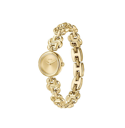 Ontdek de ultieme expressie van verfijning met de Hugo Boss Double B Dressy dameshorloge, nu exclusief verkrijgbaar bij Jewelz. Dit prachtige, volledig goudkleurige horloge is de perfecte aanvulling op elke elegante outfit.