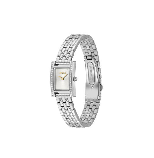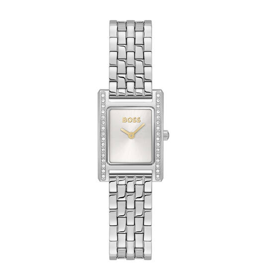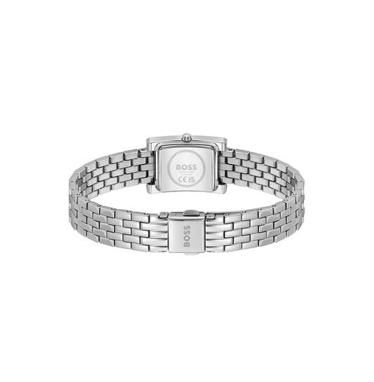 Het Hugo Boss LUCY PRECIOUS HB1502816 is een verfijnd dameshorloge dat stijl en elegantie moeiteloos combineert. Met zijn zilverkleurige stalen kast en band en subtiele rechthoekige wijzerplaat biedt dit horloge een tijdloos design dat zowel geschikt is voor dagelijks gebruik als voor speciale gelegenheden. De uniforme zilverkleurige tint geeft het horloge een moderne, minimalistische uitstraling die eenvoudig met andere sieraden te combineren is.
