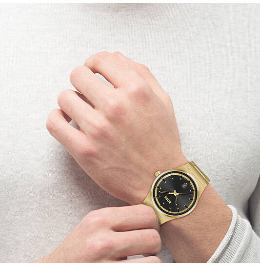 Het Hugo Boss Candor herenhorloge is een toonbeeld van gouden elegantie en tijdloze stijl, nu exclusief verkrijgbaar bij Jewelz. Dit horloge combineert een opvallend gouden design met een klassieke zwarte wijzerplaat, perfect voor de man die een statement wil maken.