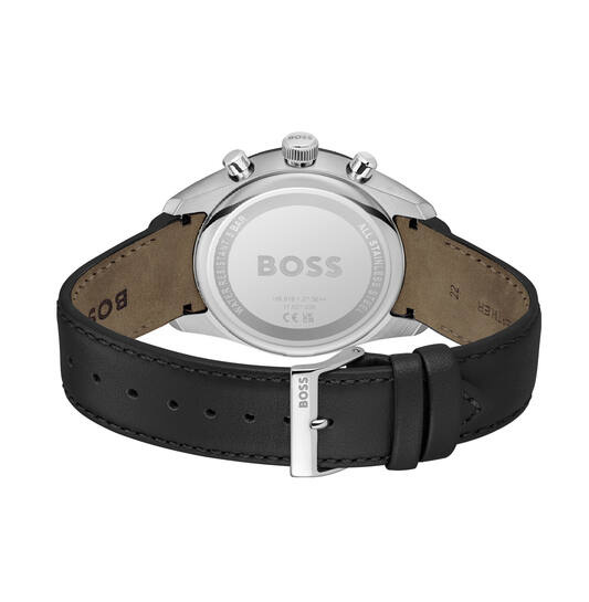 - Luxe Leren Band: De zwarte leren band biedt een comfortabele pasvorm en voegt een klassieke touch toe aan het horloge.