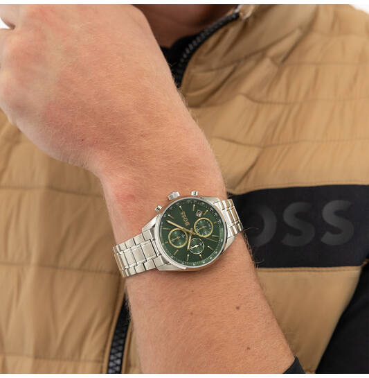 Het Hugo Boss GRAND PRIX 40 HB1514266 herenhorloge is de perfecte combinatie van luxe, precisie en sportieve elegantie. Dit model valt op door de zilverkleurige stalen kast en band in combinatie met een opvallende groene wijzerplaat, wat het horloge een moderne en karaktervolle uitstraling geeft. Het horloge is ontworpen voor mannen die zowel stijl als functionaliteit waarderen en een horloge zoeken dat zowel bij zakelijke als casual outfits past.