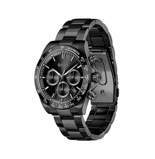 Het Hugo Boss HERO 2.0 HB1514271 is een stijlvol herenhorloge dat kracht en elegantie perfect combineert. Met een ronde stalen kast van 43 mm en een bijpassende zwartkleurige stalen horlogeband, straalt dit horloge een moderne en verfijnde uitstraling uit. De analoge tijdweergave wordt aangedreven door een betrouwbaar Quartz-uurwerk (VR32B), zodat je altijd precies de tijd bij de hand hebt.
