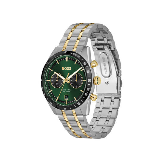 Het Hugo Boss TOURMASTER HB1514287 is een stijlvolle keuze voor de moderne man die houdt van klasse, functionaliteit en tijdloos design. Dit zilverkleurige herenhorloge is gemaakt van stevig staal en heeft een verfijnde groene wijzerplaat die zorgt voor een eigentijdse en onderscheidende uitstraling.