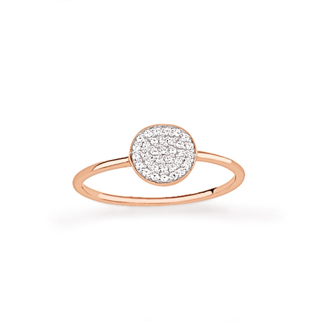 Deze ring is vervaardigd uit 9 karaat rosé met witte diamanten van 0.056 ct.