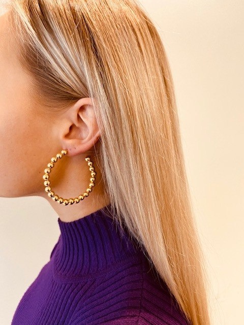 Zoek je een sieraad dat zowel klassiek als eigentijds is? Dan zijn deze prachtige creolen met ballen precies wat je nodig hebt. Ze zijn een absolute must-have voor elke vrouw die haar look wil verfraaien met een vleugje tijdloze schoonheid. Je kunt er nooit mee de plank misslaan; deze exclusieve oorbellen voegen altijd een chique touch toe aan je outfit.