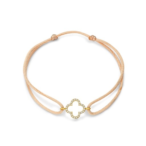 Laat je betoveren door de exclusieve Minioro Satin Leaf Pavé armband, een juweel dat zowel elegantie als persoonlijke betekenis combineert. Deze verfijnde armband is een ware blikvanger dankzij de prachtige 14-karaats geelgouden Leaf-bedel. De bedel, geïnspireerd op de iconische klavervorm, staat symbool voor geluk – een prachtige gedachte om altijd bij je te dragen.