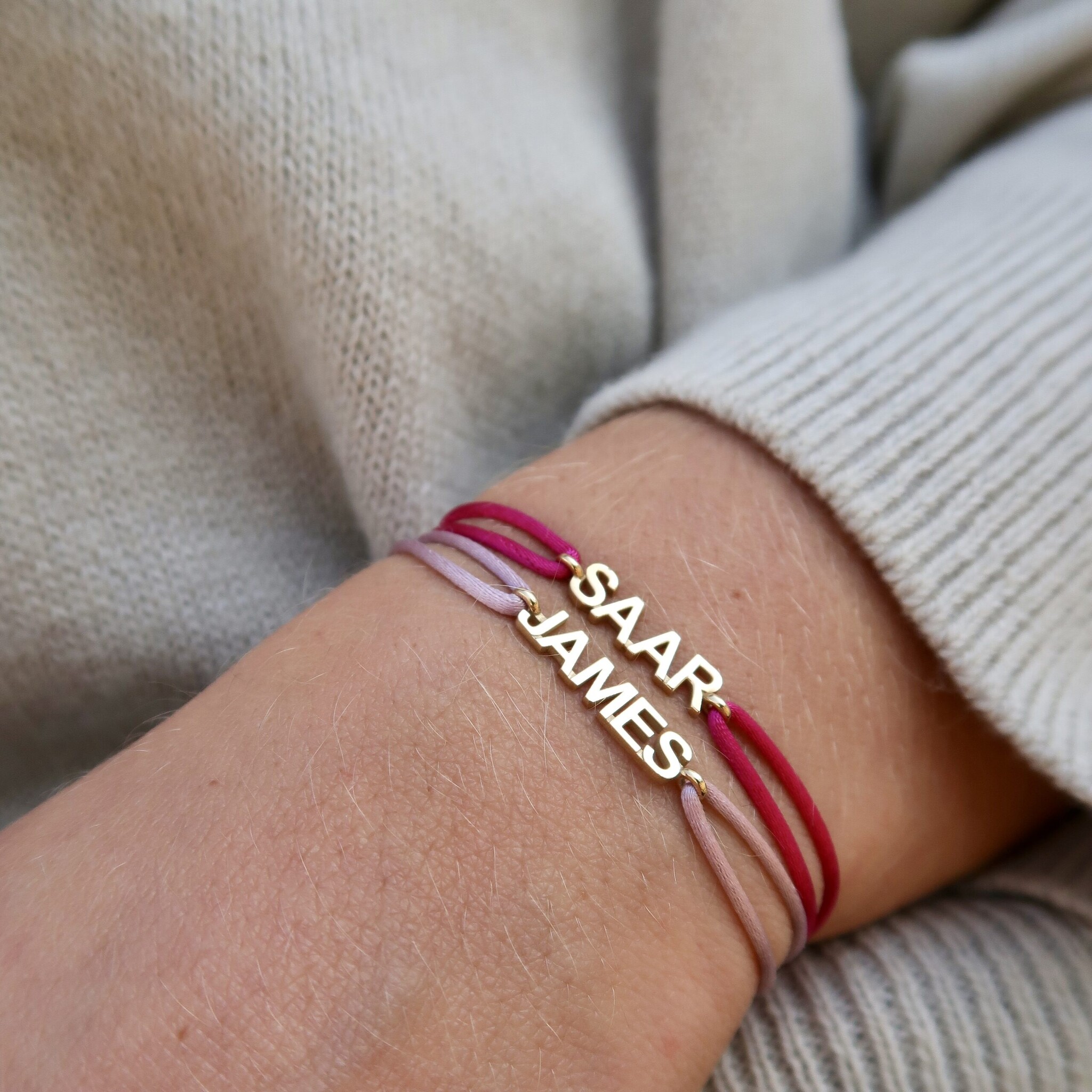 Ontwerp nu jouw eigen, unieke Minioro Satin Nametag armband en draag een persoonlijk statement om je pols! Deze armband is een prachtige combinatie van een glanzend satijnen koord met een elegante 14-karaats gouden Nametag. Het mooiste? Je kunt deze Nametag volledig personaliseren met jouw eigen naam, de naam van een geliefde, of een ander betekenisvol woord. Dit maakt elke armband net zo uniek en bijzonder als de drager zelf.