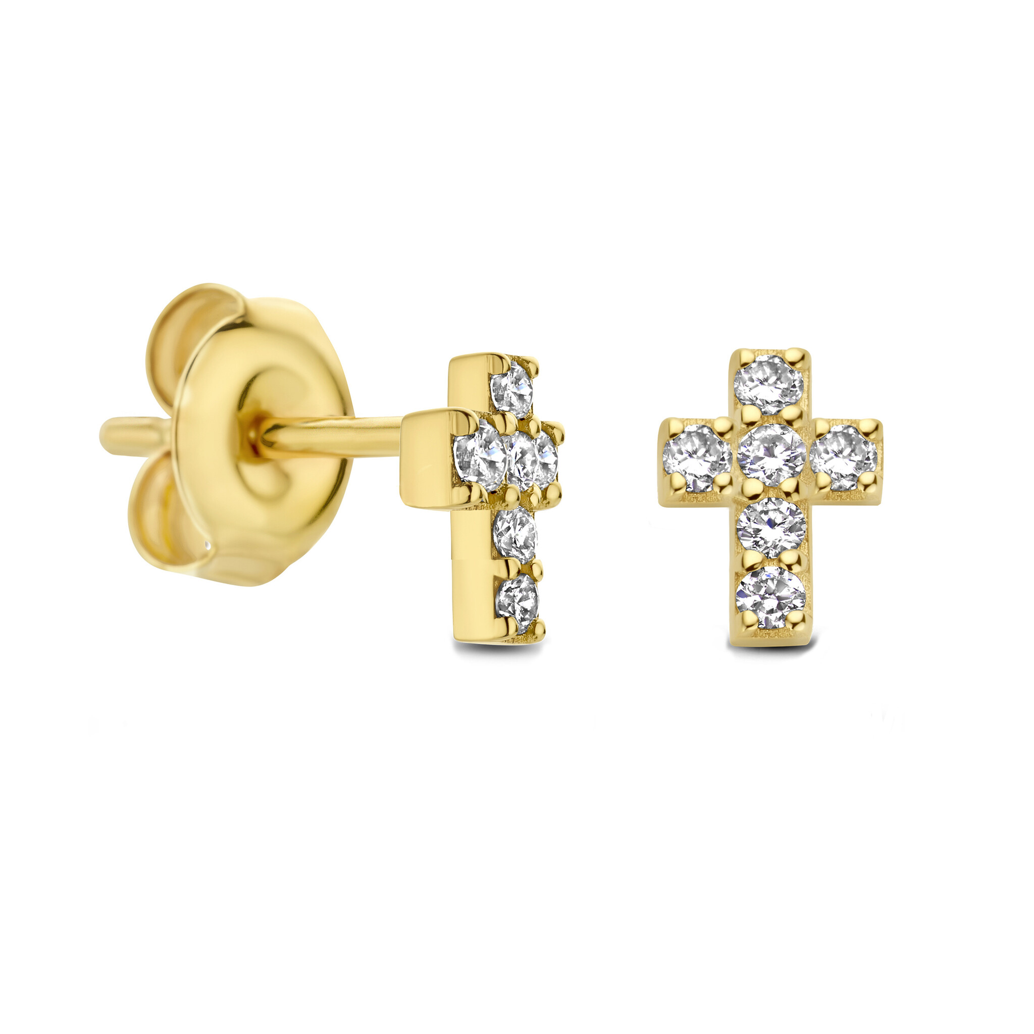 Deze schitterende oorstekers zijn vervaardigd uit hoogwaardig 14-karaats goud, wat garant staat voor duurzaamheid en een blijvende, warme glans. Elk kruisje is rijkelijk bezet met schitterende witte diamanten, pavé gezet voor een maximale lichtreflectie. De afmetingen van de oorstekers zijn 4,9 mm x 3,6 mm, waardoor ze een ideale grootte hebben die zowel opvalt als comfortabel draagt. Per oorsteker is er een diamantgewicht van 0.03 karaat, wat neerkomt op een indrukwekkend totaal gewicht van 0.06 karaat aan diamanten per paar. Dit maakt ze tot een ware eyecatcher die je gezicht op delicate wijze laat stralen.
