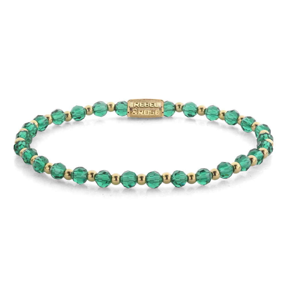 Verrijk je look met de levendige energie van de Rebel & Rose Mix Green Morning Glam Rocks armband, modelnummer RR-40167-G. Deze betoverende, handgemaakte kralenarmband is samengesteld uit schitterende 4mm Glas Rock stenen in een prachtige groentint. De toevoeging van glanzende goudkleurige edelstalen kralen en de bijpassende goudkleurige sluiting creëert een luxueus en fris contrast, dat doet denken aan een zonnige lentemorgen. De stevige edelstalen sluiting garandeert niet alleen duurzaamheid, maar zorgt er ook voor dat de armband comfortabel en veilig om je pols blijft zitten. Met een breedte van slechts 4mm is dit sieraad elegant en subtiel, perfect om dagelijks te dragen, maar toch opvallend genoeg om complimenten te ontvangen.