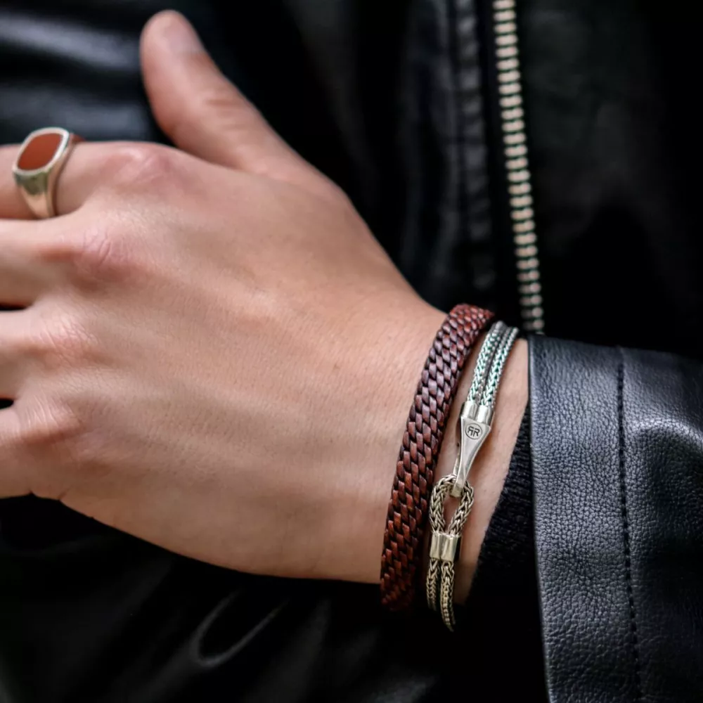 De zilverkleurige glans en gepolijste afwerking maken deze armband veelzijdig en tijdloos. Draag hem solo voor een rustige, krachtige uitstraling of combineer hem met leren armbanden en kralenarmbanden van edelsteen of parel voor een gelaagde look met persoonlijkheid. Of je nu kiest voor een casual outfit, een werkdag of een avond uit: de Double Hooked Six past zich moeiteloos aan.