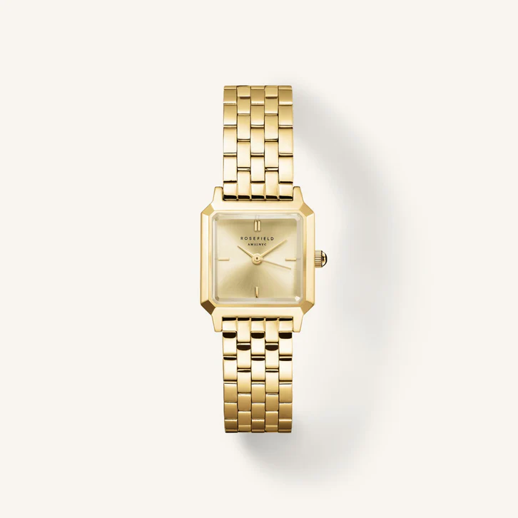 Ontdek de warme elegantie van het Boxelle horloge met een verfijnde lichte champagne zonnestraal wijzerplaat, een schitterende aanwinst binnen de collectie van Jewelz. Dit stijlvolle dameshorloge combineert een klassiek vierkant design met een luxueuze uitstraling, perfect voor het toevoegen van een subtiele, goudkleurige touch aan elke outfit. De horlogekast, met afgeronde hoeken en een afmeting van 19.5 x 19.5 mm en een slanke dikte van 7 mm, is vervaardigd uit verguld messing, wat een warme en rijke uitstraling garandeert.
