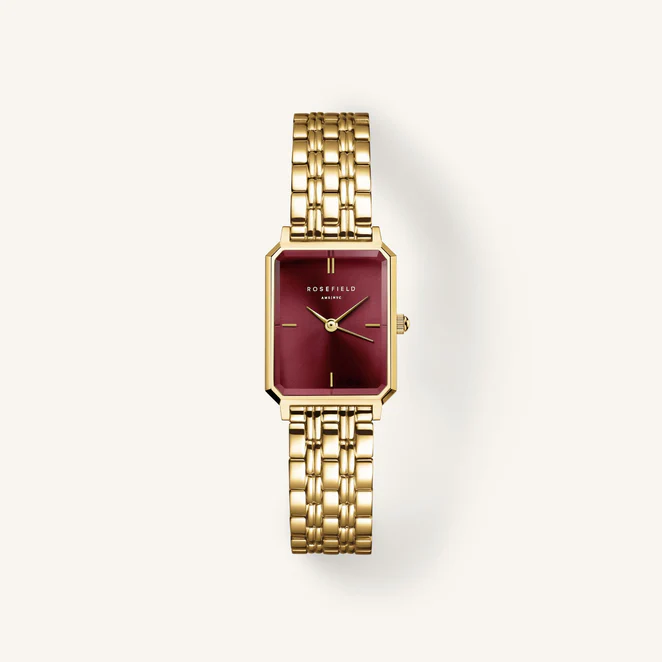 De Rosefield Octagon is meer dan alleen een horloge; het is een modeaccessoire dat tijdloze elegantie uitstraalt. Geïnspireerd door de art deco-stijl uit de jaren '20, is dit horloge een ode aan het verleden met een moderne twist. De opvallende achthoekige kast en de rijke bordeauxrode kleur van de wijzerplaat maken dit horloge tot een echte eyecatcher.