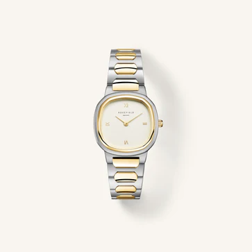 De Rosefield Gaia Duotone combineert elegantie met een eigentijdse twist. De vierkante horlogekast van 30 x 30 mm is gemaakt van messing in een harmonieuze goud- en zilverkleurige afwerking en heeft een slanke dikte van 6,5 mm, waardoor het horloge comfortabel en subtiel om de pols ligt.