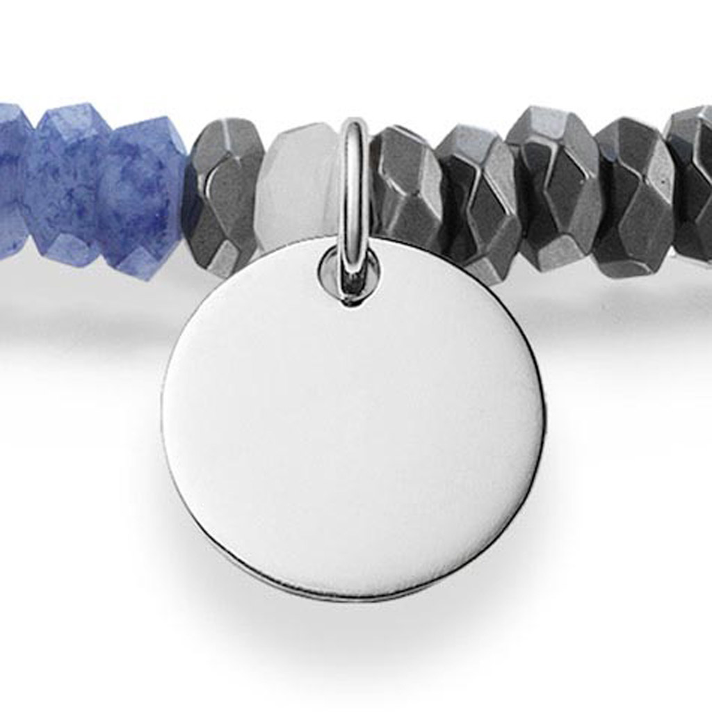 Love Bridge armband van Thomas Sabo met Haematiet Jade Lapis Lazuli met een zilveren bedel op een elastische draad. De maat van deze armband is 15.5cm.