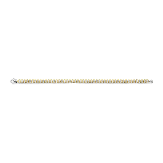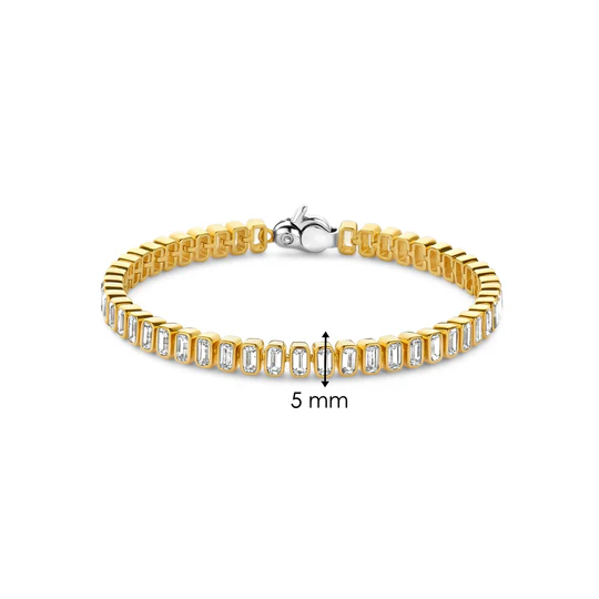 Ontdek de betoverende schoonheid van de TI SENTO vergulde zilveren tennisarmband 23040ZY. Deze tijdloze klassieker combineert het beste van twee werelden: de koele elegantie van zilver en de warme luxe van goud.