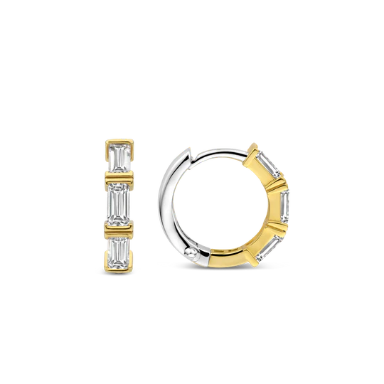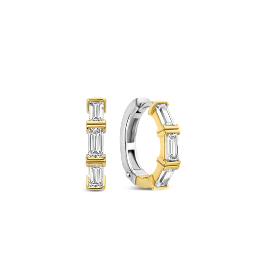 Vintage glamour, moderne stijl. De TI SENTO Milano gold-plated silver hoop earrings 7974ZY zijn een ode aan klassieke elegantie. Gemaakt van 925 sterling zilver en met glanzend geel, deze oorbellen zijn een tijdloze toevoeging aan elke outfit. De twee kleine hoepels zijn versierd met een rij van verblindende witte cubic zirconia stenen, die een vleugje glamour toevoegen aan het ontwerp.