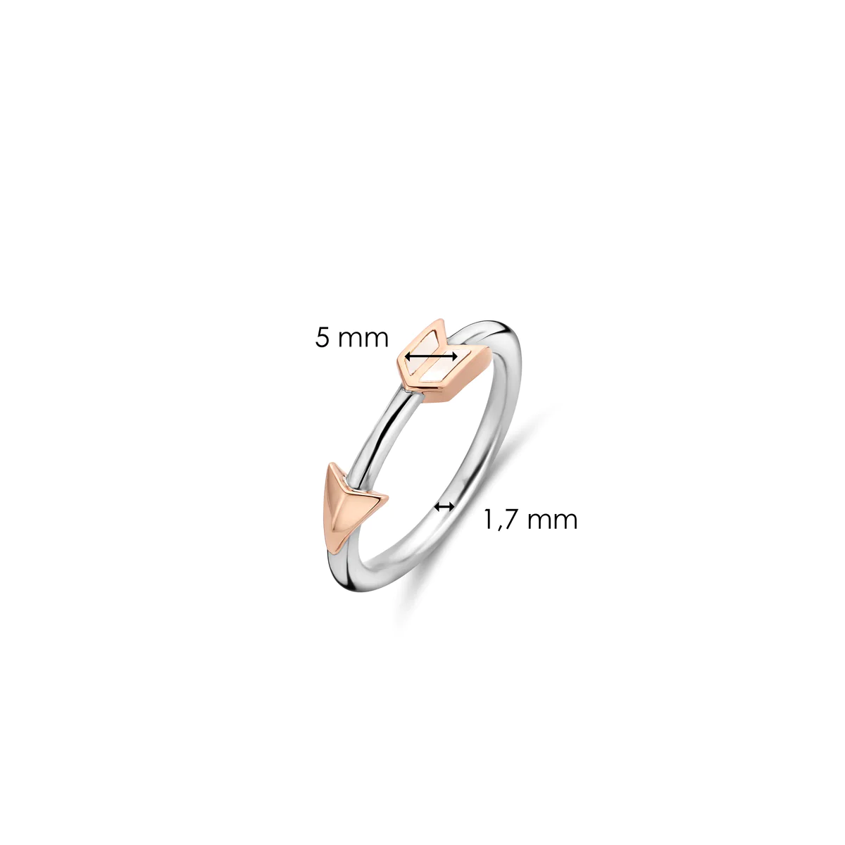 Deze zilveren TI SENTO - Milano ring 12198MW heeft een parelmoer en rosé vergulde pijl als middelpunt. Het ontwerp is funky en dynamisch, maar behoudt altijd haar elegantie.