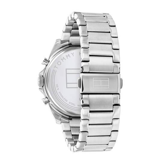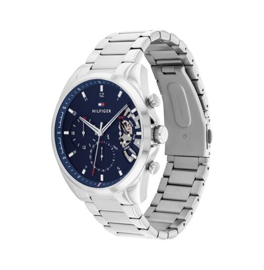 Tommy Hilfiger Baker Herenhorloge - Zilverkleurige Stalen Band & Blauwe Wijzerplaat: Tijdloze Elegantie met een Frisse Uitstraling